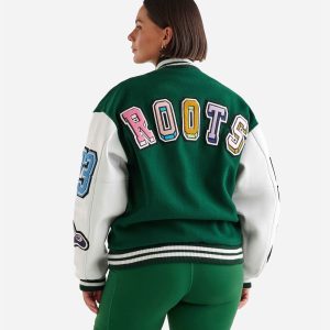 Oem Green Women Varsity Jackets White Leather Sleeves Sports Baseball Jacket Chenille Letterman Embroidery Patch